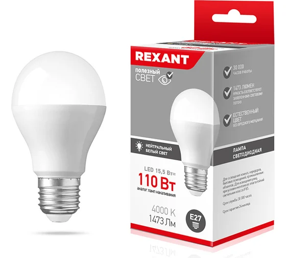 Лампа светодиодная груша A60 15,5Вт 4000К E27