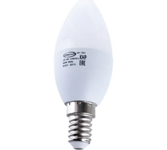 Лампа светодиодная свеча C37 10Вт 6500К Е27 IONICH