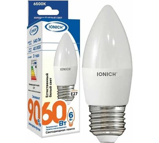 Лампа светодиодная свеча C37 6Вт 6500К Е14 IONICH