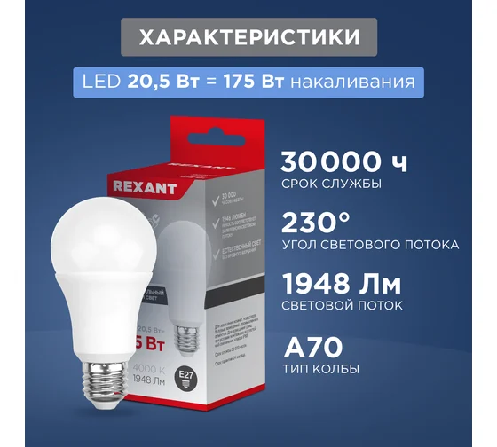Лампа светодиодная груша A70 20,5Вт 4000К E27
