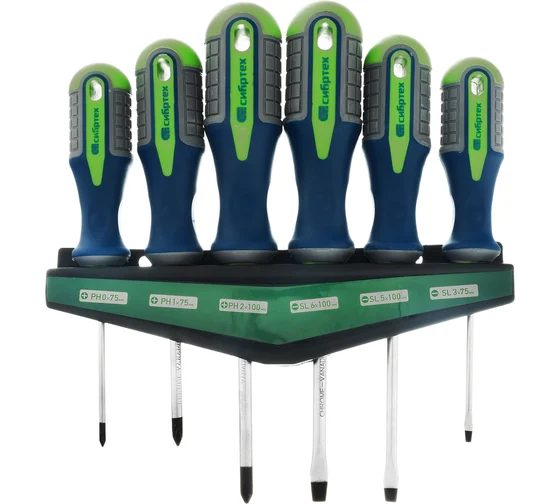 Набор отверток на полке 6пр.CrV 3к рук. // Сибртех