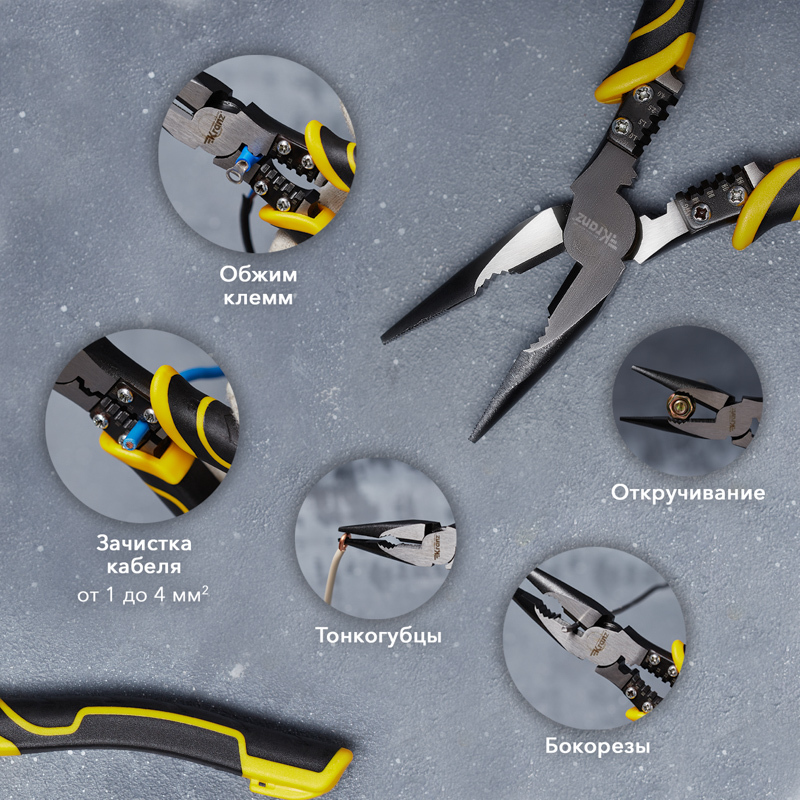 Длинногубцы NICKEL, 200 мм, изогнутые никелированные, двухкомпонентные рукоятки// Matrix