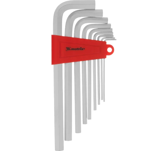 Набор ключей имбусовых HEX, 2–12 мм, CrV, 9 шт., удлиненные, сатин.// Matrix