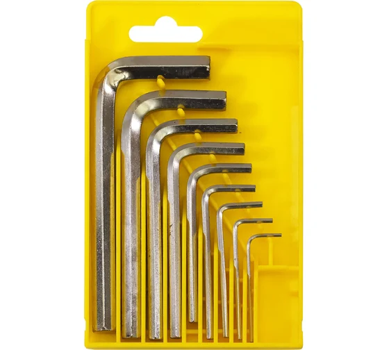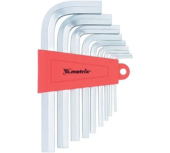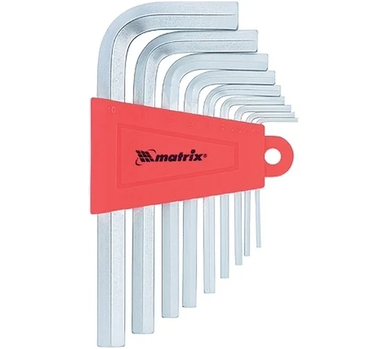 Набор ключей имбусовых HEX, 1,5–10 мм, CrV, 9 шт., короткие, сатин.// Matrix