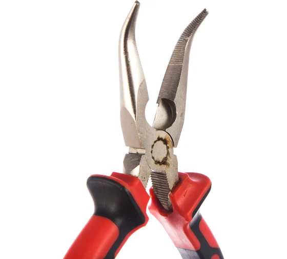 Длинногубцы NICKEL, 180 мм, изогнутые никелированные, двухкомпонентные рукоятки// Matrix