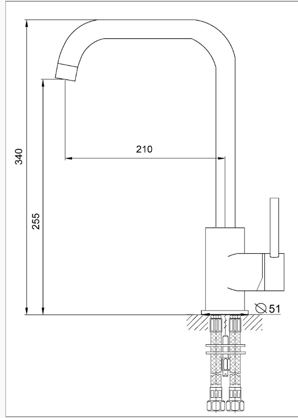 Смеситель д/кух RUSANT под фильтр картридж D35 Г-обр излив LUX