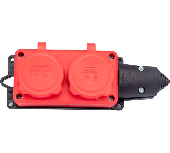 Колодка 2гн 1Ф с загл. "КОМПАКТ" с/з 16А 250В IP44 каучук красн.UNIVersal"